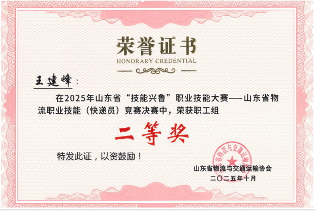 近期,在2025年山东省“技能兴鲁”职业技能大赛中,我校物流管理专业教师王建峰凭借扎实的专业知识和出色的实践能力,荣获山东省物流职业技能“快件处理员”赛项一等奖、“快递员”赛项二等奖、“仓储管理员”赛项三等奖,我校获优秀组织奖,为学校赢得了荣誉。