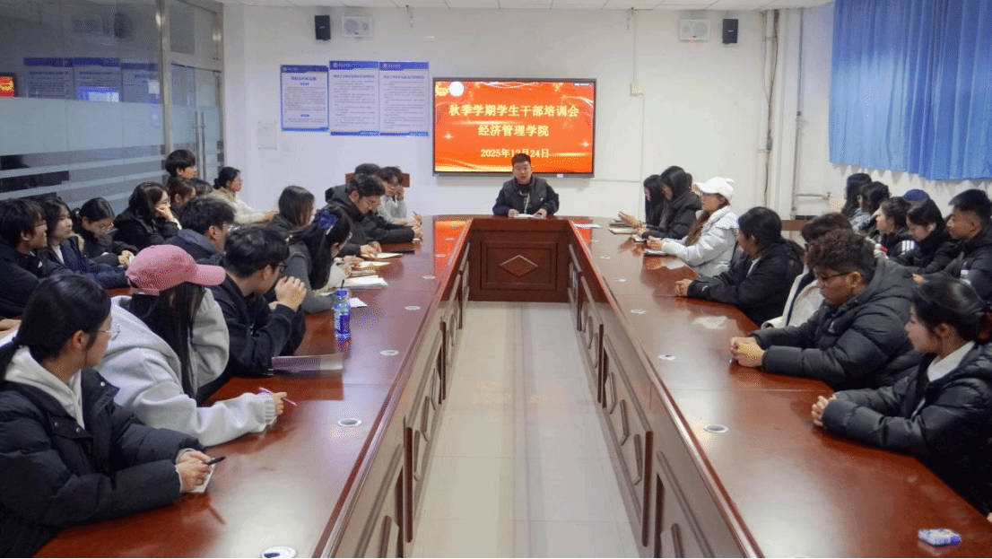 2025年12月24日,经济管理学院在图书馆TG5006会议室成功召开2025年秋季学期学生干部培训会。本次会议旨在进一步加强学生干部队伍建设,明确职责使命,提升综合素养与工作能力。学院辅导员、2024级及2025级各班班长、团支部书记参加了会议。学院团总支书记狄继承做专题培训。