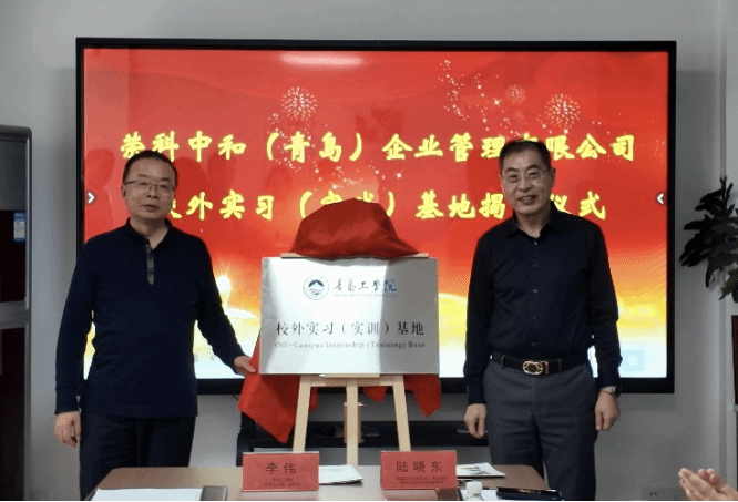 在全体与会人员的见证下,青岛工学院投资方总裁、副校长李伟与荣科中和(青岛)企业管理有限公司董事长陆晓东代表双方签署合作协议,刘连新校长与陆晓东董事长共同为校外实践教育基地揭牌。