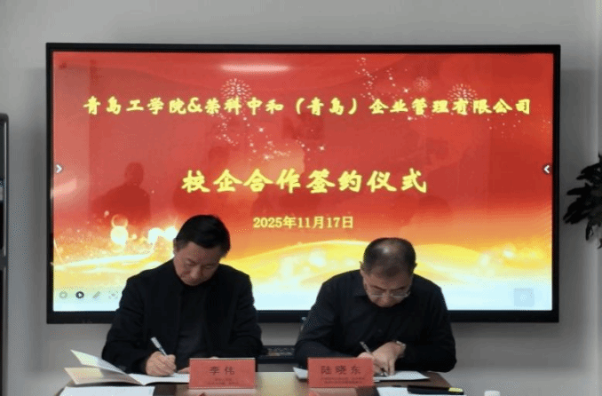 2025 年 11 月 17 日,青岛工学院、民建胶州支部与荣科中和(青岛)企业管理有限公司政校企合作洽谈会暨校外实践教育基地签约仪式在荣科中和公司隆重举行。民建胶州支部主委、胶州市政协副主席贾全国,民建胶州支部副主委、胶州市政协委员、胶州市检察院副检察长陈敏,民建胶州支部副主委、胶州市人大代表、青岛丰光精密机械股份有限公司董事长李军,民建胶州支部会员、胶州市政协委员、荣科中和(青岛)企业管理有限公司董事长陆晓东, 民建胶州支部会员、胶州市政协委员、青岛尚德文化科技有限公司董事长周汪洋等政企代表;青岛工学院校长刘连新,投资方总裁、副校长李伟,招生就业处、部分二级学院及相关专业负责人共同出席活动。此次洽谈会以 “资源共享、优势互补、协同育人” 为核心,旨在搭建起政校企深度融合的合作平台,为应用型人才培养与区域产业发展注入新动能。